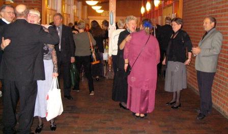 Nyårsfirarna anländer. Tar välkomstdrinken, minglar och trängs |