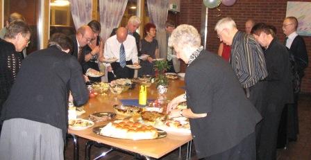 Nyårsfirare förser sig med godsaker från buffén. Mycket gott att välja på! | |