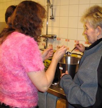 Avsmakning av välkomstdrink i köket. Stark nog ? |