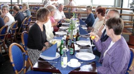 | 7: Festkommitten i frukostköket. Exkl. Marianne, som arbetade i foto-ögonblicket | 8: Middag på "Värdhuset på Dal" - hemresa |