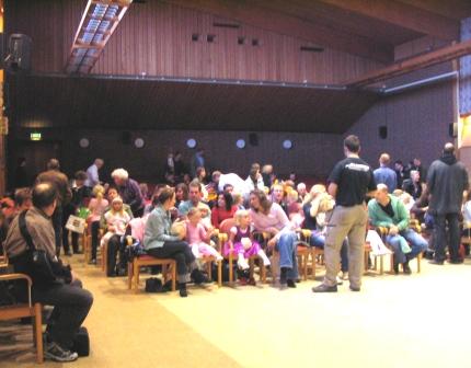 | Många anhöriga väntar!! | Trollen: får vi snart komma in o dansa?! | Ett litet troll med föreningens ordförande Margareta |