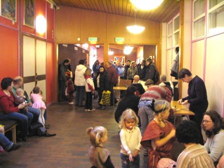 | Många anhöriga väntar!! | Trollen: får vi snart komma in o dansa?! | Ett litet troll med föreningens ordförande Margareta |